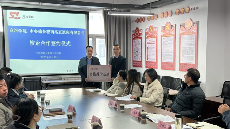 12月15日,生物学院与中央储备粮商洛直属库有限公司共建实践教学与劳动教育实践基地授牌仪式在商洛学院举行。商洛学院生物医药与食品工程学院院长赵永平、副院长梁旭华,中央储备粮商洛直属库有限公司总经理王卫、副总经理姜昕、李婷,商洛市粮油质量检验所实验室负责人张小婷出席会议。生物学院粮食工程专业教师代表和中央储备粮商洛直属库有限公司相关科室员工参加会议。