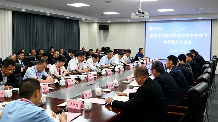 5月30日上午,我校在丹江校区召开本科教育教学审核评估专家意见交流会。审核评估专家组组长、厦门大学原副校长邬大光代表专家组反馈线上与入校评估整体情况。专家组全体成员,陕西省委教育工委、省教育厅二级巡视员高巍,商洛市人民政府副市长苏红英,中国西部高等教育评估中心主任陆根书出席会议。校领导张志昌、范新会、刘勇、王浩、刘宝盈、王新军、郭瑾,各职能部门、教辅部门负责人及各二级院(部)党政负责人,教学督导团团长参加会议。会议由专家组副组长、长沙学院原党委书记韦成龙主持。