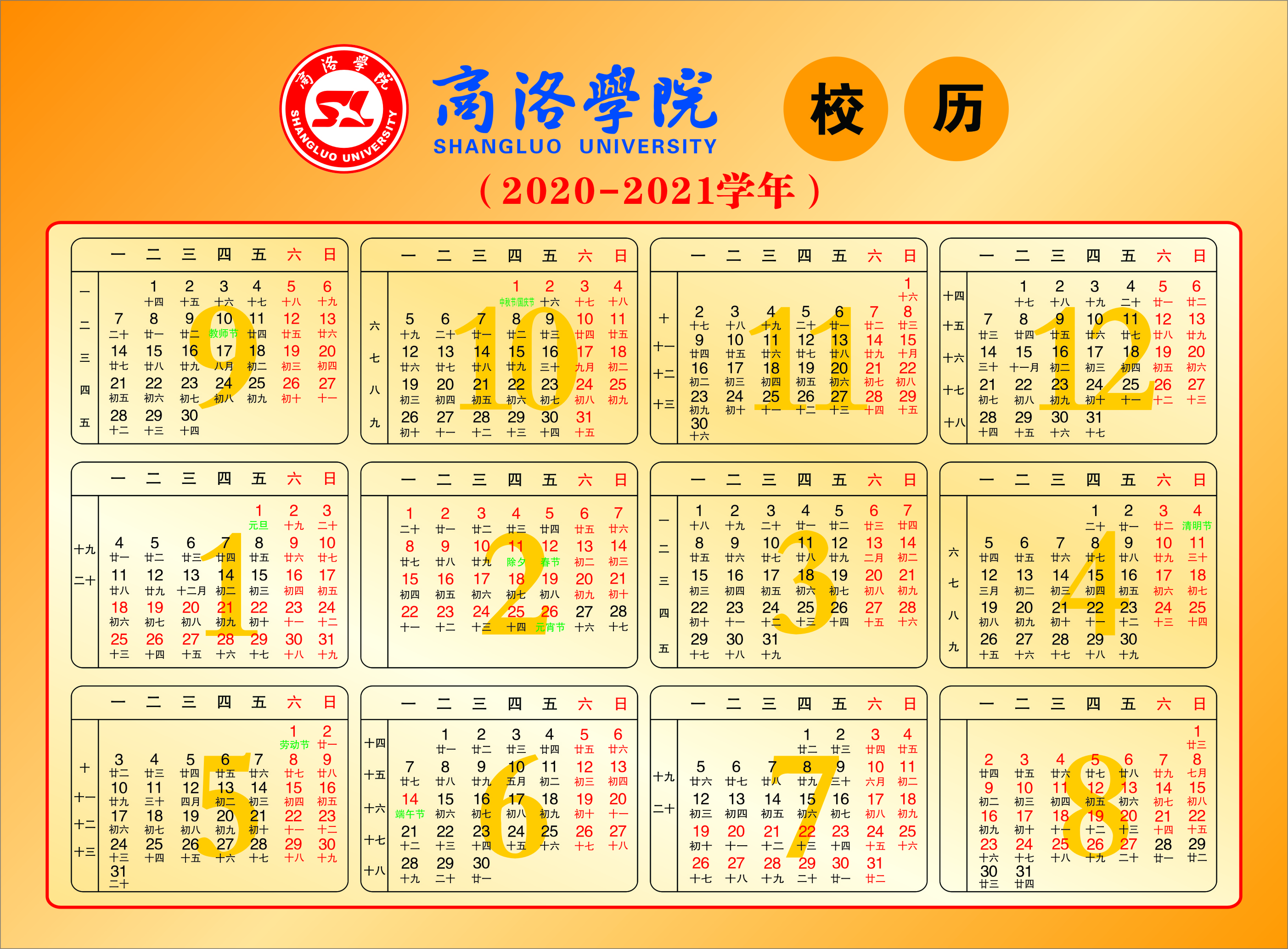 商洛学院校历(2020—2021学年)