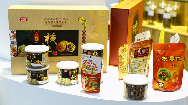 成果展厅陈列着学校与陕西天士力植物药业股份有限公司、陕西森弗天然制品有限公司以及地方专业合作机构共同开发系列产品——金银花茶、分心木茶、固态饮料、金银花保健枕、亚麻籽油、万寿菊压片糖果、琥珀桃仁等,还陈放有学校教师自主研发特色产品——“商山养生红”保健酒、“杜仲保健酒”“樱桃酒”“闯王花茶”“素颜面膜”“柿子叶面膜”“中药皂”等。其中,“闯王花茶”已成功实现成果转化,进入商品生产。此外,展厅还陈放着生物学院于浩世高级实验师历经30多年培育的3个小麦新品种:“商麦8928”“商麦5226”和“商麦1619”,目前已被确立为商洛及周边地区的小麦栽培的骨干品种。