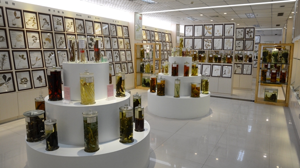 标本陈列室保存有自1979年以来收藏的植物蜡叶标本近9000份,植物浸制标本130份,土壤剖面标本18份,五大水系水样15份,中药材饮片标本480份。其中不仅有野生葛根、巨型野灵芝、杜仲等名贵药用植物,也包含了享誉中外的多种地道商洛药材——丹参、桔梗、连翘、黄芩、五味子、金银花、山茱萸、黄姜等。
